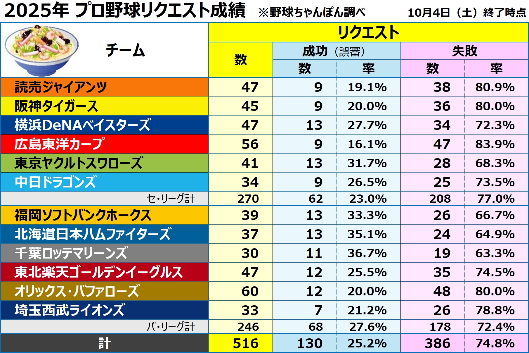 今シーズンのリクエスト成功率はこれで25.2%。